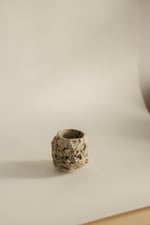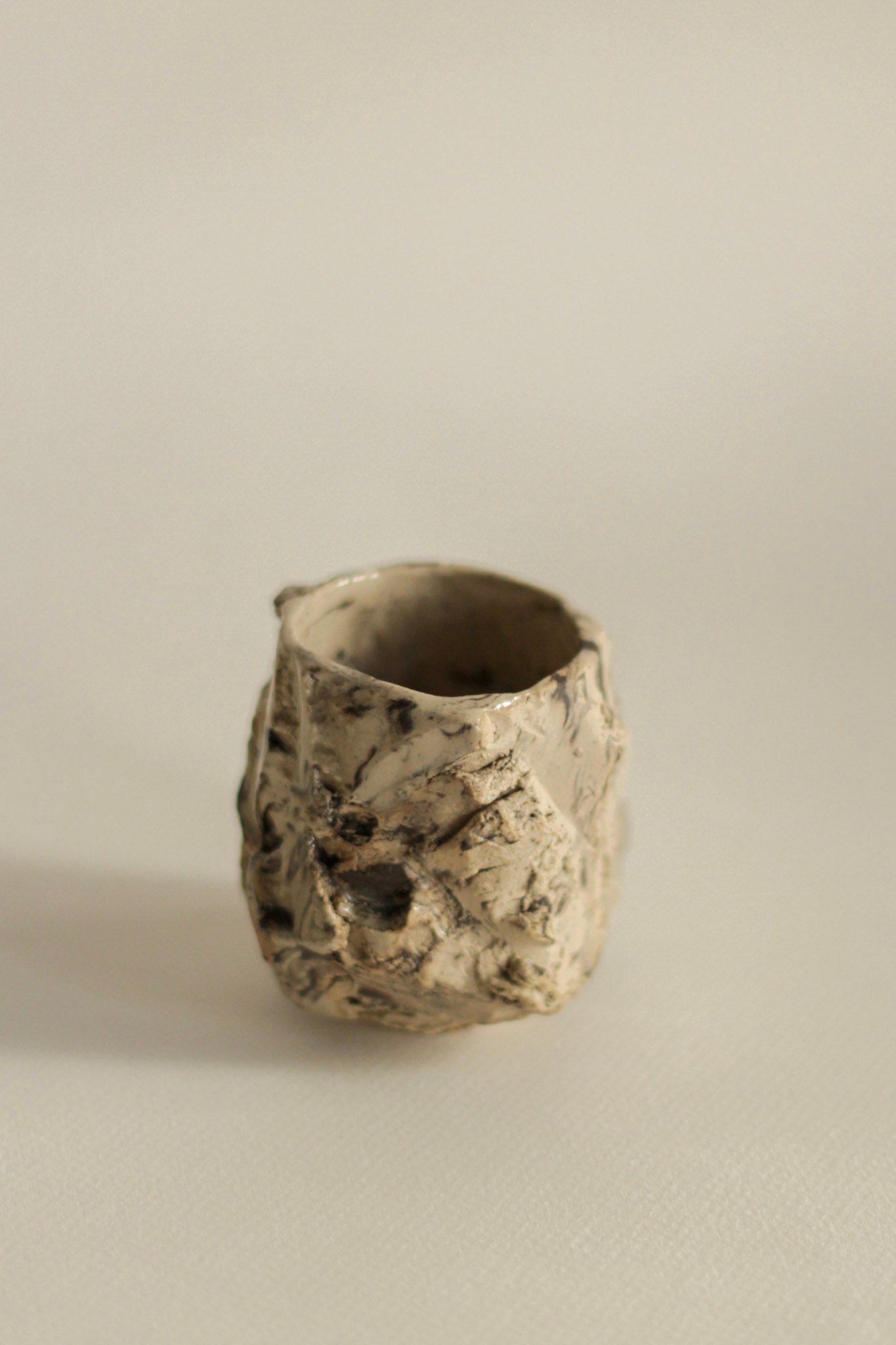 ceramic cup made using the traditional Japanese kurinuki technique. The form is carved by hand from a solid block of clay, leaving marks of the process and giving each piece a unique character.