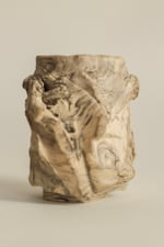 ceramic cup made using the traditional Japanese kurinuki technique. The form is carved by hand from a solid block of clay, leaving marks of the process and giving each piece a unique character.