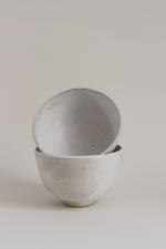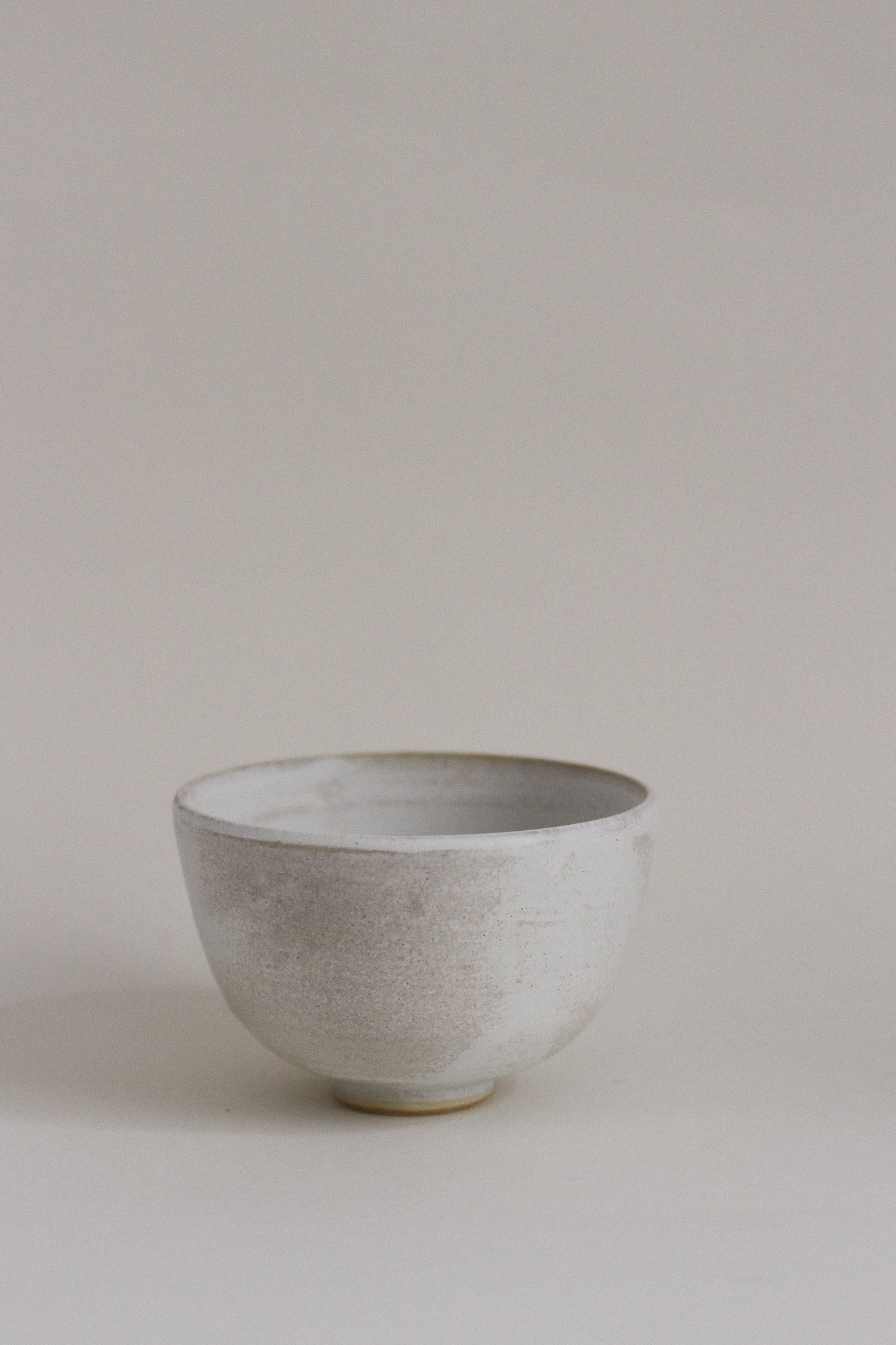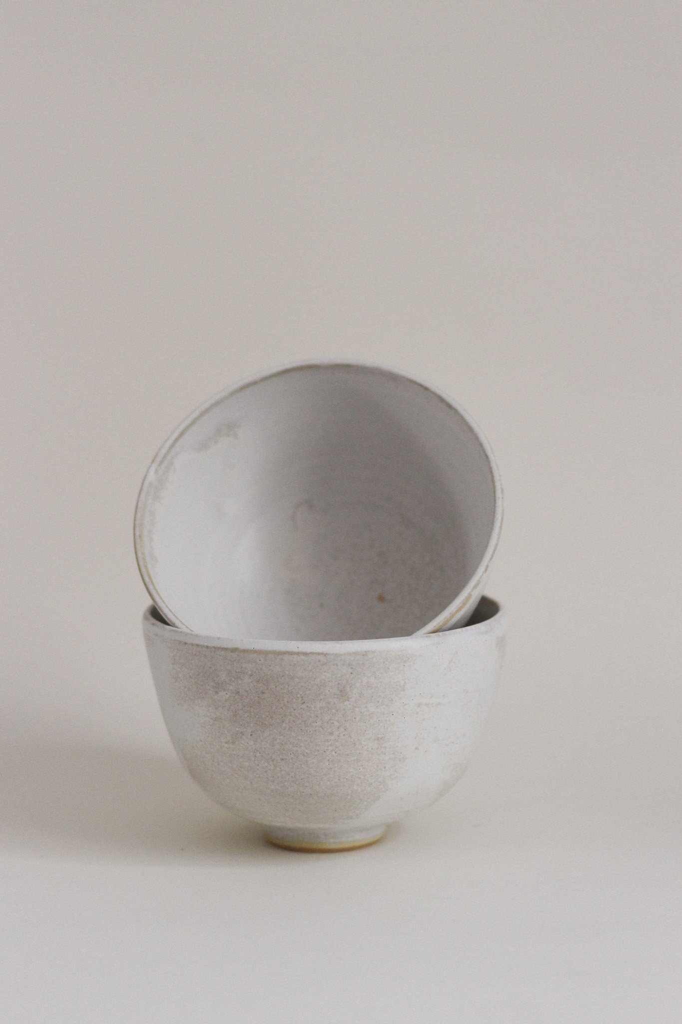 made on pottery wheel with stoneware, available in one of two glaze options: satin rice white or glossy olive green